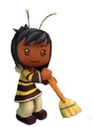 Roxie Road is a neat freak who owns an ice cream shoppe, and is a milkmaid who cares for her cows: Annabelle, Clarabelle, and Tuffy. She also seems to have a thing for bees, as she wears outfits with black and yellow stripes, like a bee. She mentions is dressed up as a bee because she uses honey in her ice cream. Roxie is also obsessed with being clean and the act of cleaning! She can be found wiping away the counters of her ice cream shop or sweeping the floors, as well as the dust in Cowboy Junction. She is also a minigame host, a chemical scientist at the Sim Protection Agency, and a pilot.